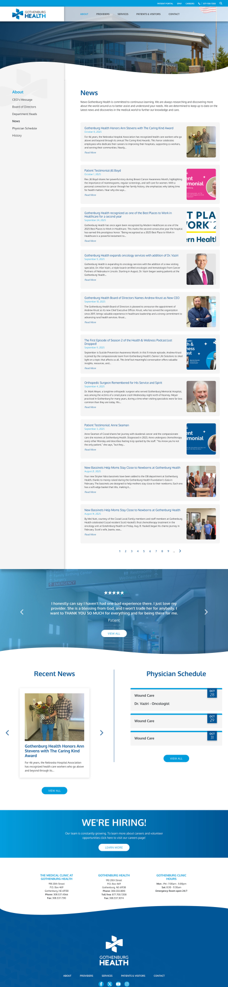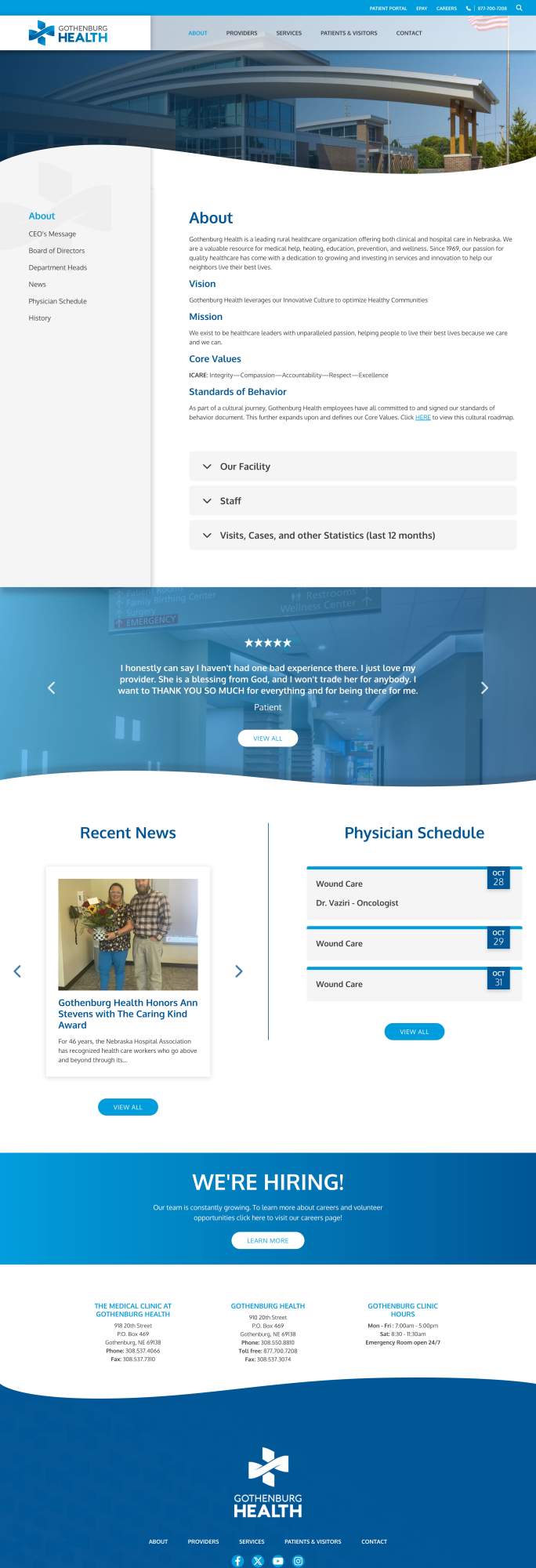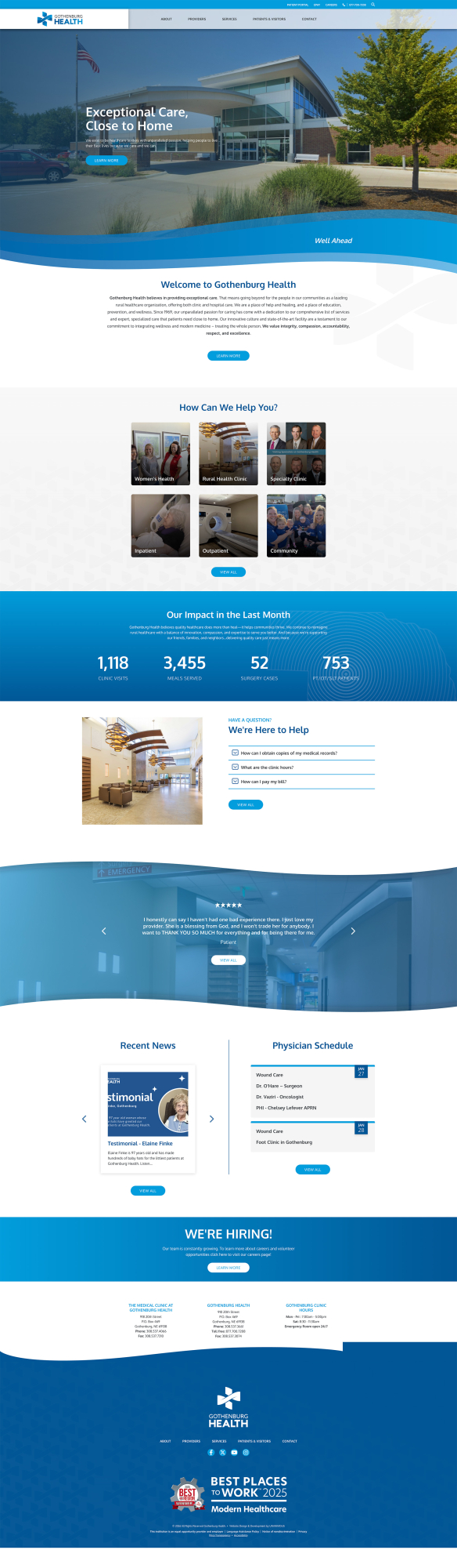 Gothenburg Health has been dedicated to delivering exceptional healthcare for over 50 years. When the organization embarked on a major facility renovation and modernization effort, it also undertook a comprehensive rebrand. UNANIMOUS partnered with Gothenburg Health, leading the development of a strong communication strategy, branding, marketing, and website development. The refreshed brand reflects the hospital’s unwavering commitment to excellence—both in the care it provides and in its role as a regional healthcare leader.